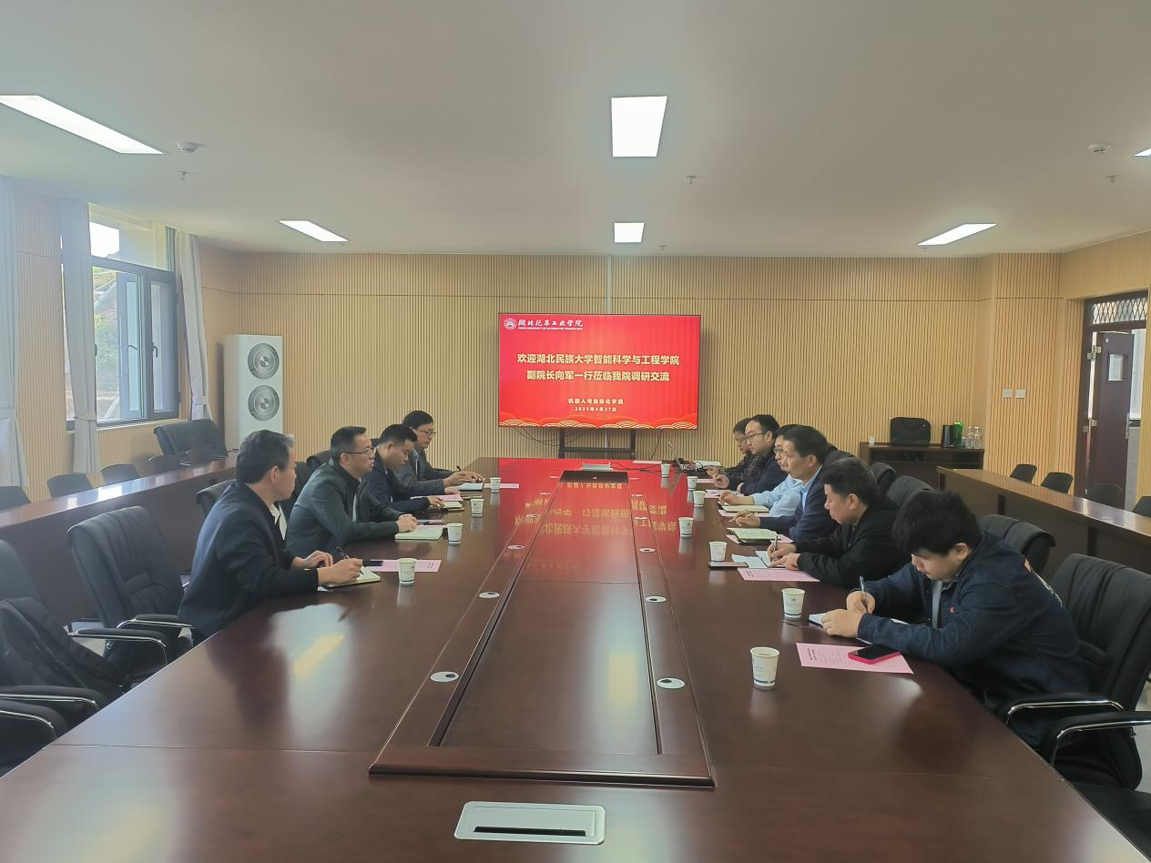 (文/图 贺茂)4月27日上午,湖北民族大学智能科学与工程学院副院长向军一行来校调研,就电气工程及其自动化、机器人工程、智能电网信息工程等专业的人才培养进行交流研讨。永久免费无人区副院长周学良及相关专业负责人、系主任参加座谈。
