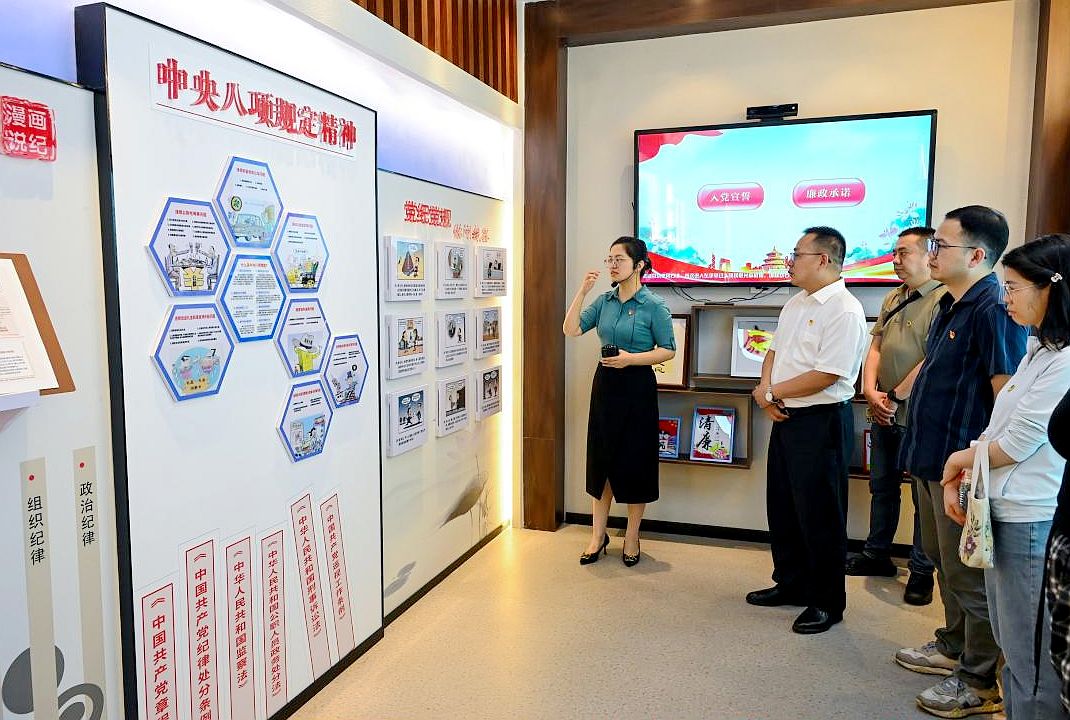 在中央八项规定精神专区,专题短视频、短剧生动演绎违规吃喝、收受礼品礼金等违纪案例,九宫格形式详细解读执纪要点与量纪标准,以情景化教育释放纪律威慑力。活动最后,党员干部在党旗前重温入党誓词,以庄严宣誓坚定初心。